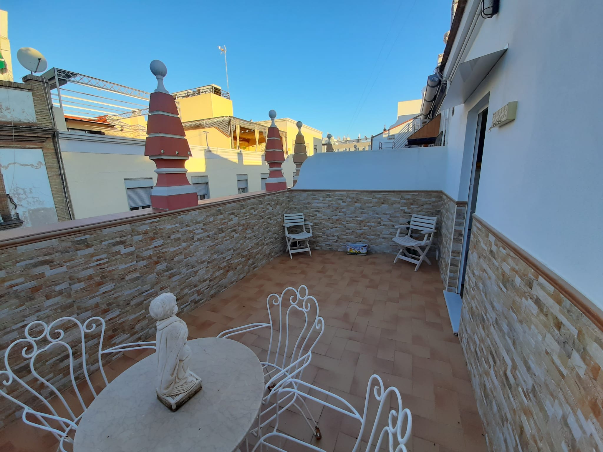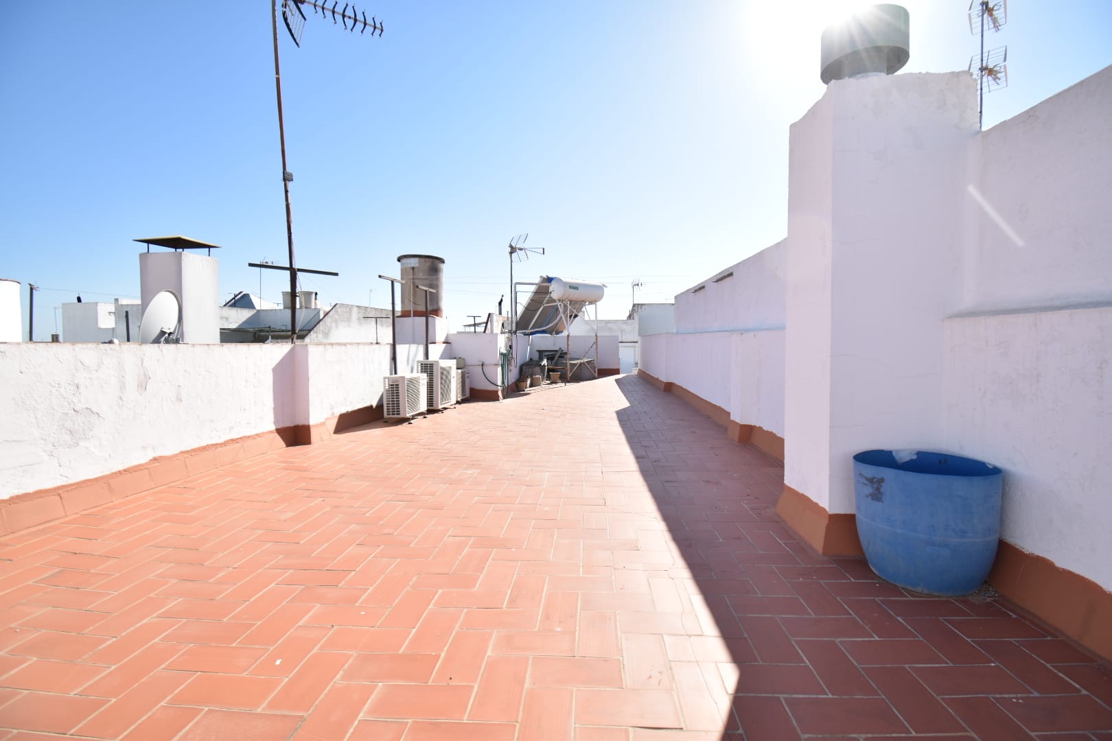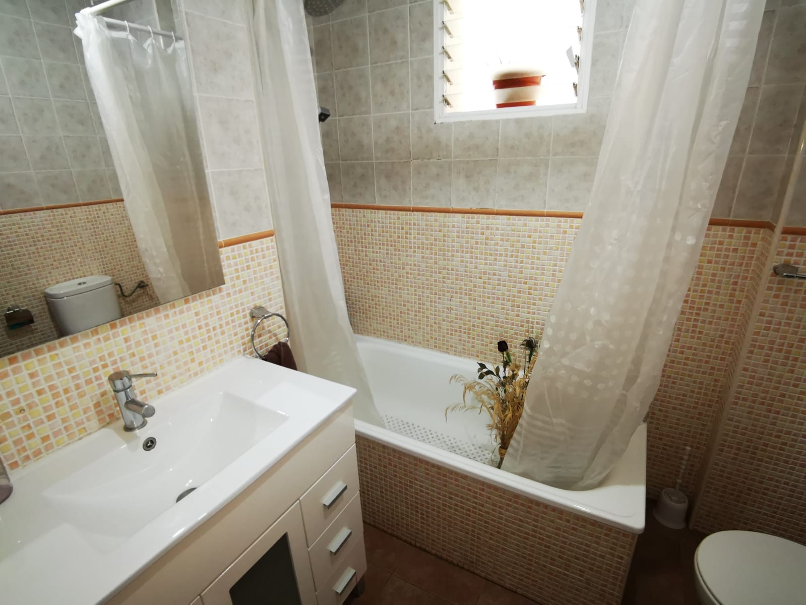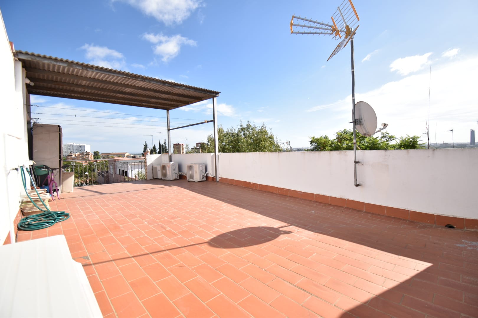 El baño es funcional y se encuentra en perfecto estado. Además, el piso cuenta con un patio que incluye un práctico trastero, ideal para guardar tus pertenencias. La buhardilla, con cierre de aluminio y acristalada, proporciona un espacio adicional que puedes personalizar a tu gusto y se accede fácilmente desde la entrada de la vivienda.