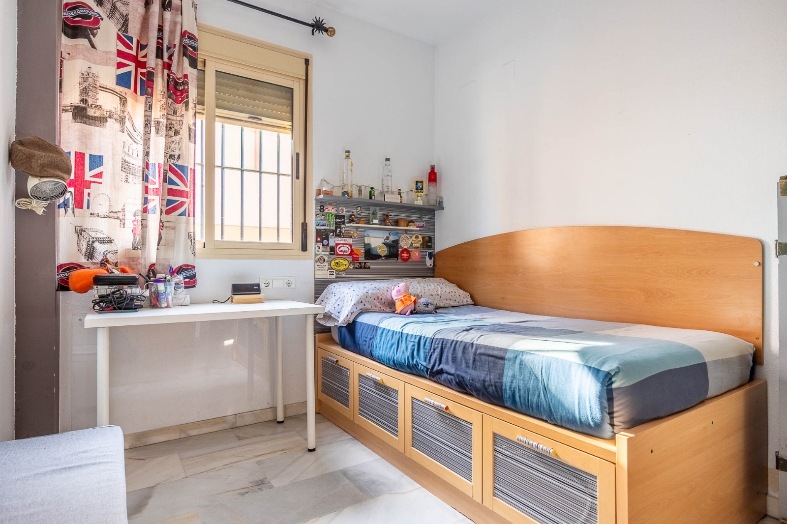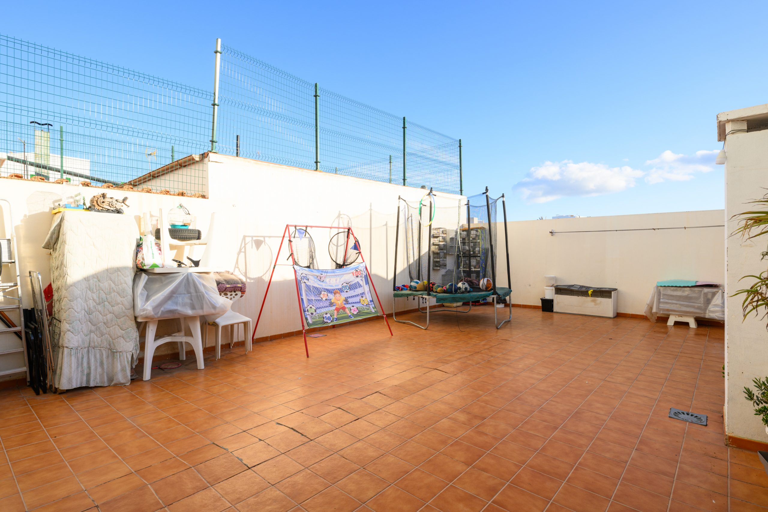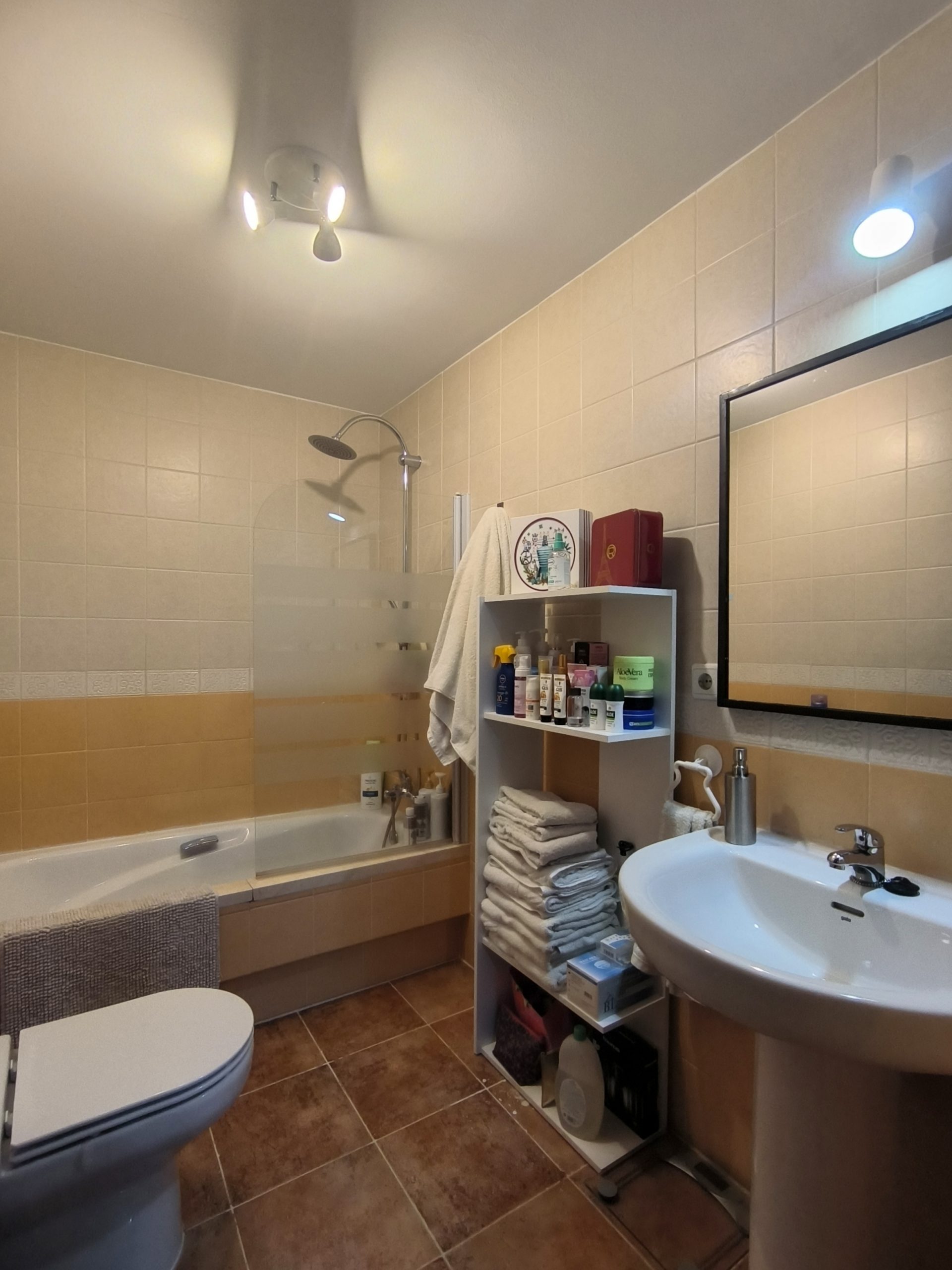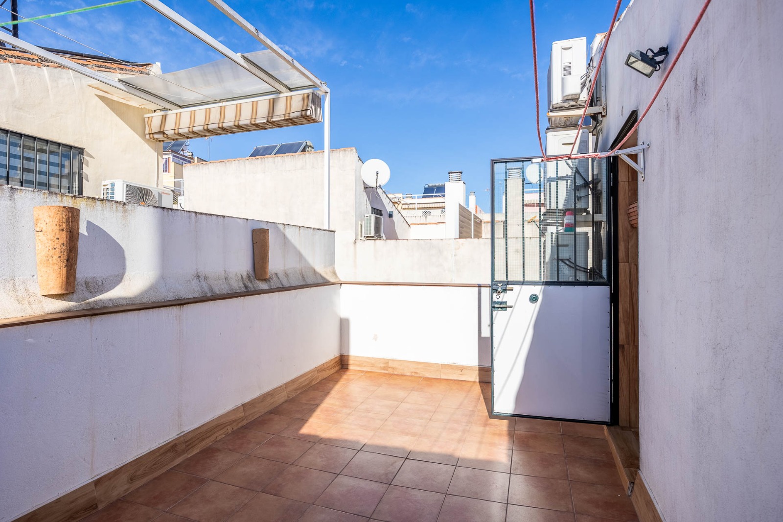 El baño es funcional y se encuentra en perfecto estado. Además, el piso cuenta con un patio que incluye un práctico trastero, ideal para guardar tus pertenencias. La buhardilla, con cierre de aluminio y acristalada, proporciona un espacio adicional que puedes personalizar a tu gusto y se accede fácilmente desde la entrada de la vivienda.